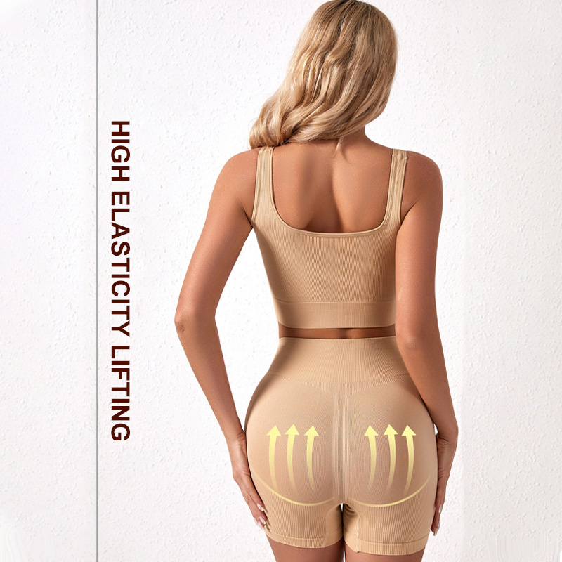 The U-shaped back design of our Yoga Sports Bra Set is not only aesthetically pleasing but also functional. This design element ensures that the sports bra stays in place, providing excellent support and stability during your yoga practice. The U-shaped back also offers full coverage, reducing the risk of slipping or discomfort while you move through your poses. Whether you prefer gentle restorative yoga or more vigorous vinyasa flow, the U-shaped back design ensures that your sports bra remains securely in position, allowing you to focus on your practice without any wardrobe adjustments. It's the perfect blend of style and functionality.