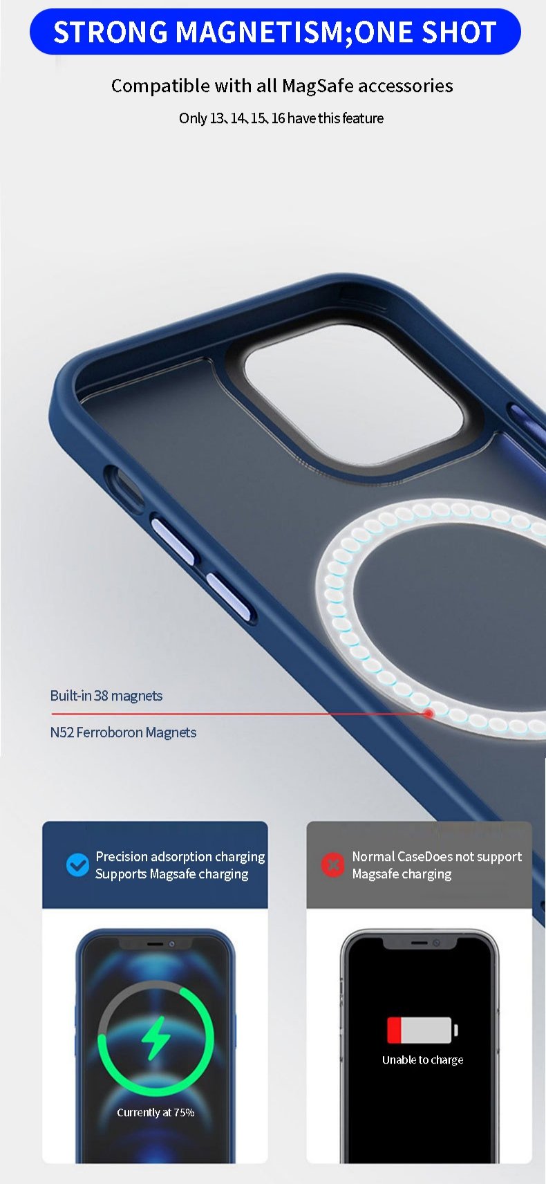 The built-in super magnets can strengthen the magnetic connection and ensure auto-alignment to make wireless charging faster and safer than before. It’s compatible with all Qi-certified chargers, wireless chargers, and car mounts. Our iPhone Case will not fall, no matter how it shakes.