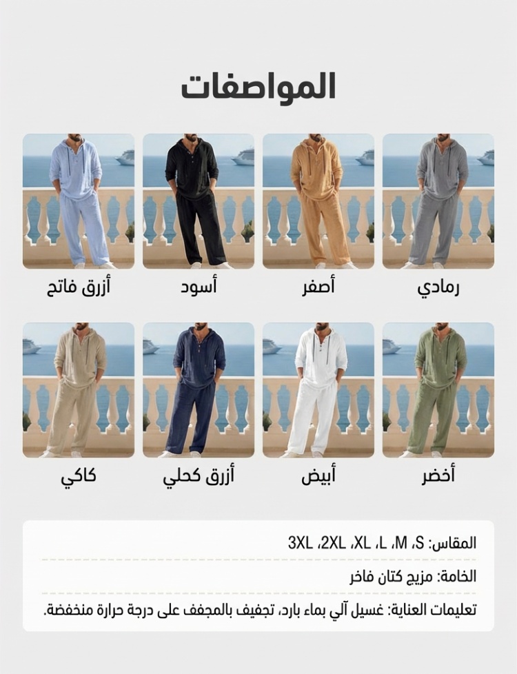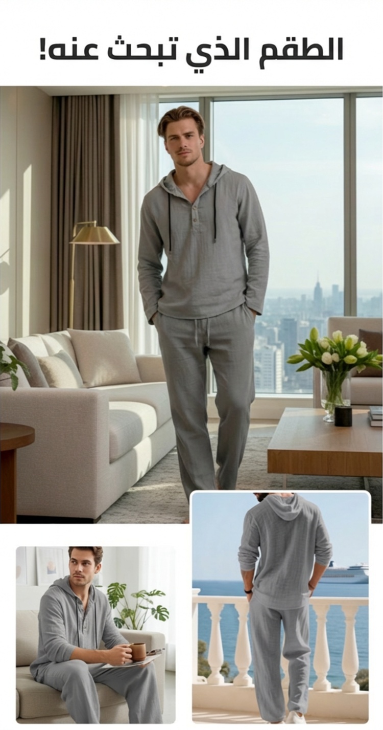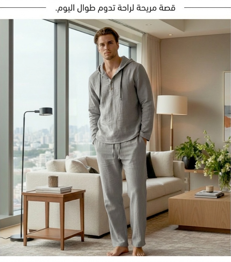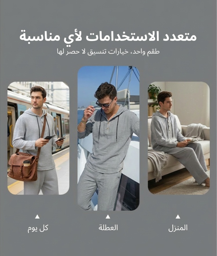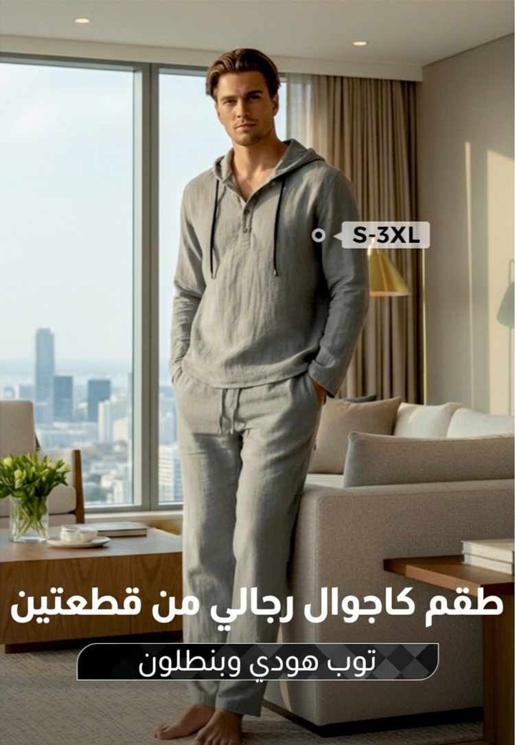 طقم كاجوال رجالي من قطعتين هودي وبنطلون