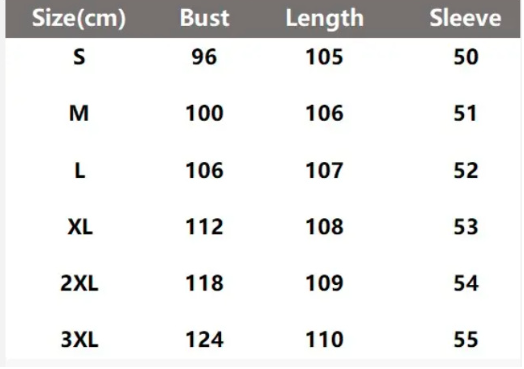 جدول المقاسات