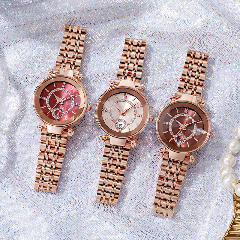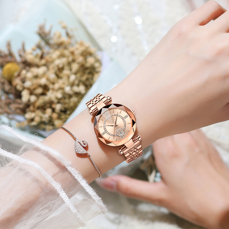 This elegant quartz watch is a must-have for any fashion-forward woman. It is not only a watch but a classic and sophisticated decoration with shining stones around the dial.